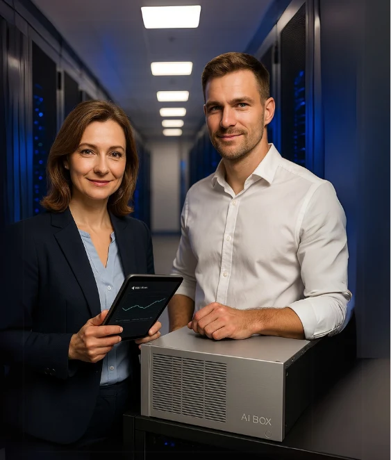 AI Box instalujemy w kilka godzin w Twoim DC. Szkolimy zespół, konfigurujemy modele i zostajemy na linii 24/7, by każde pytanie miało natychmiastową odpowiedź.
