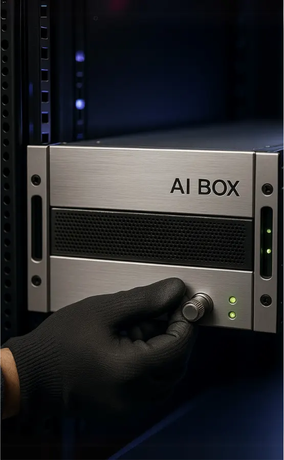 AI Box instalujemy w kilka godzin w Twoim DC. Szkolimy zespół, konfigurujemy modele i zostajemy na linii 24/7, by każde pytanie miało natychmiastową odpowiedź.